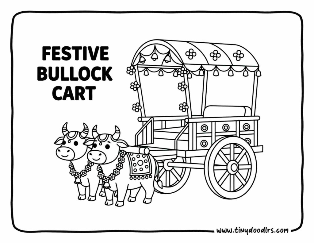 18. Bullock Cart with Decorated Bulls – Pongal Festival Drawing for Kids