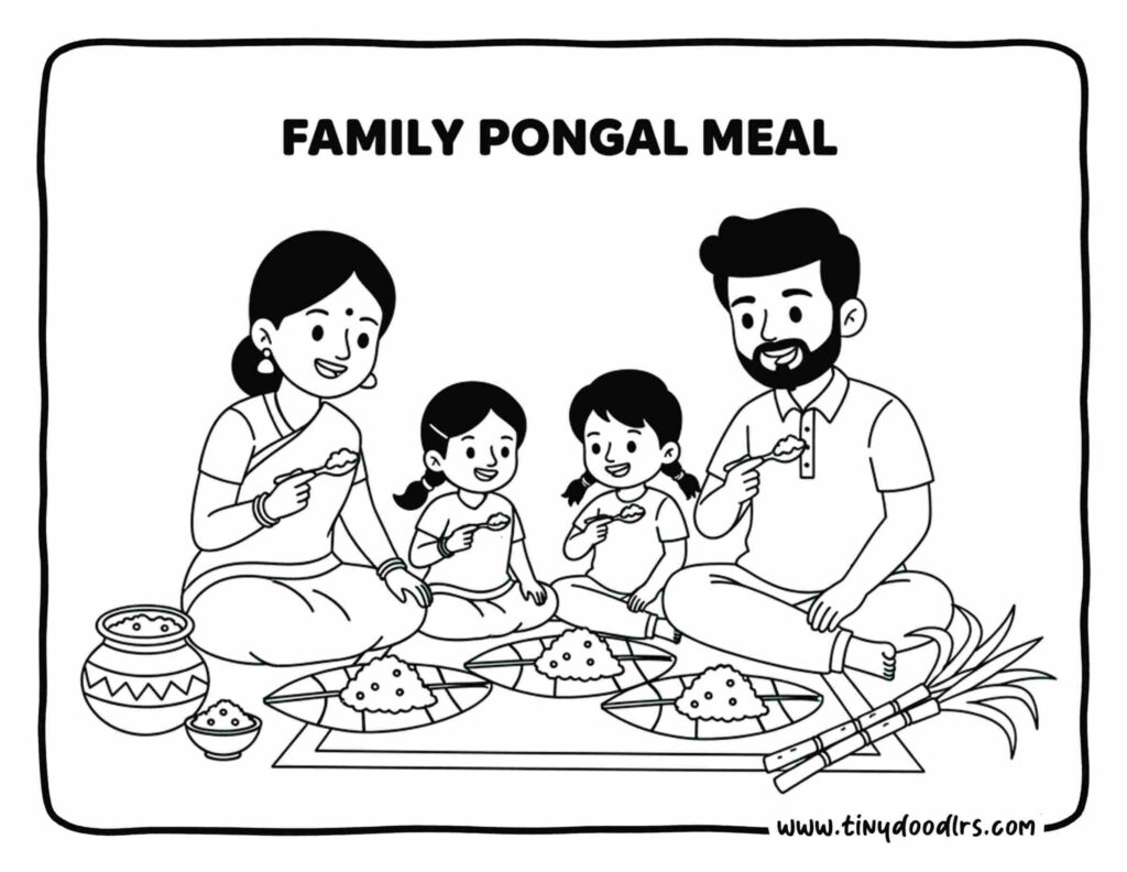 5. Family Sitting on Floor Eating Pongal Meal Together