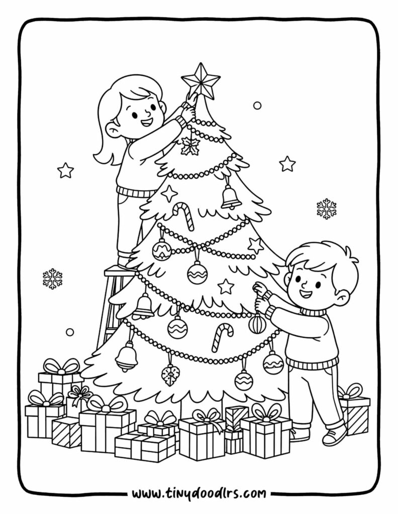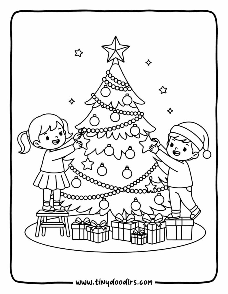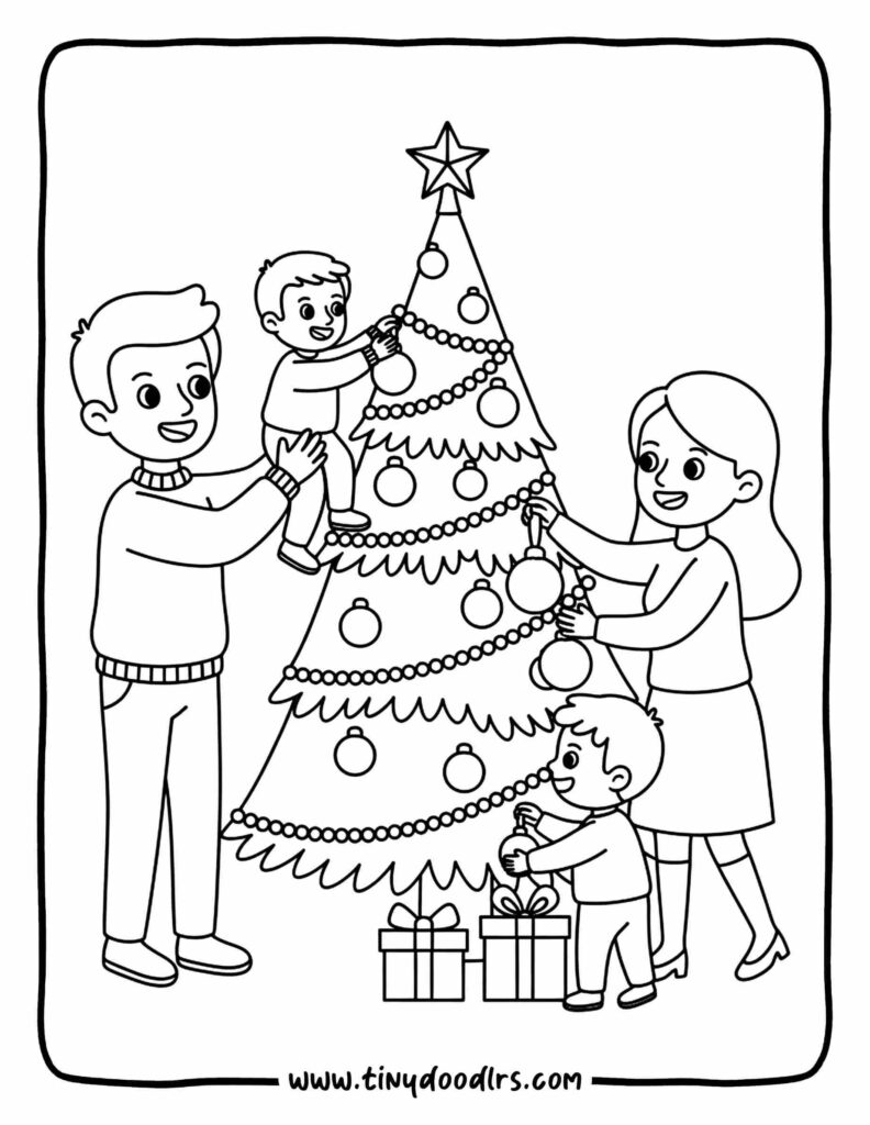 Decor-focused pages are fun and simple for younger children, making them perfect Christmas Coloring Pages – Free Printables options.