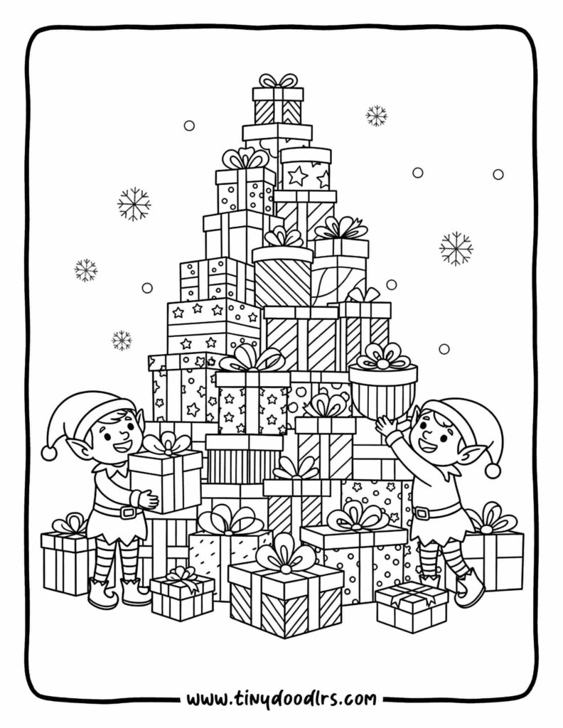 Activity: Kids can color the elves in rainbow outfits for a fun twist.