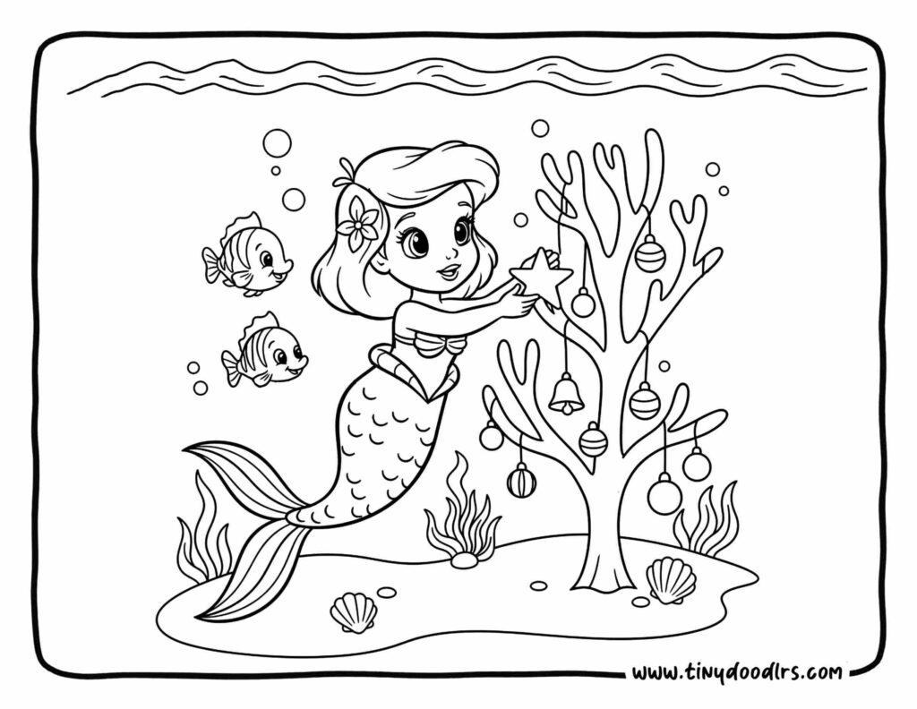 2. Little Mermaid Decorating an Underwater Coral Christmas Tree