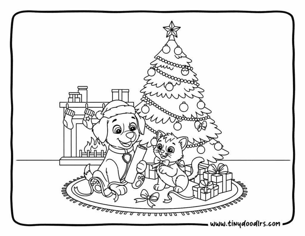 9. Puppy & Kitty Wrapping Gifts Under the Tree