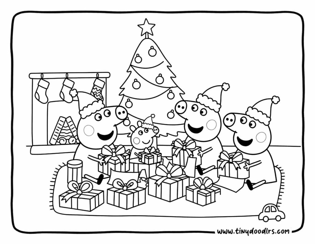 14. Pig Family in Santa Hats Opening Presents