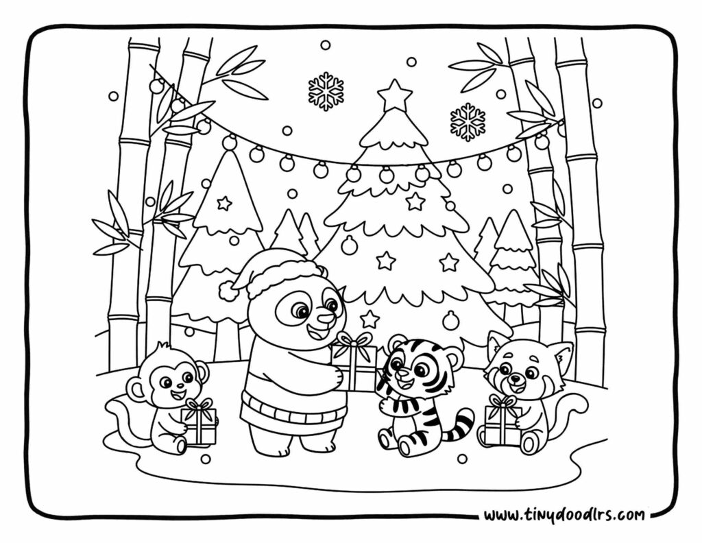 - Kids can draw gifts around the tree for extra fun.