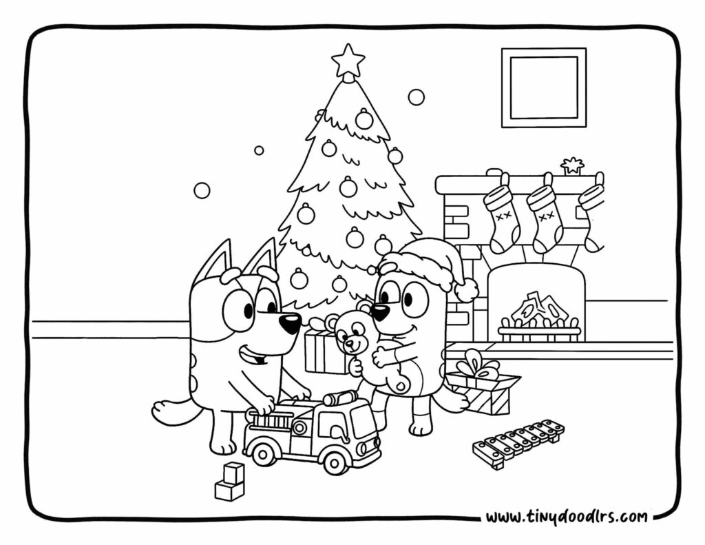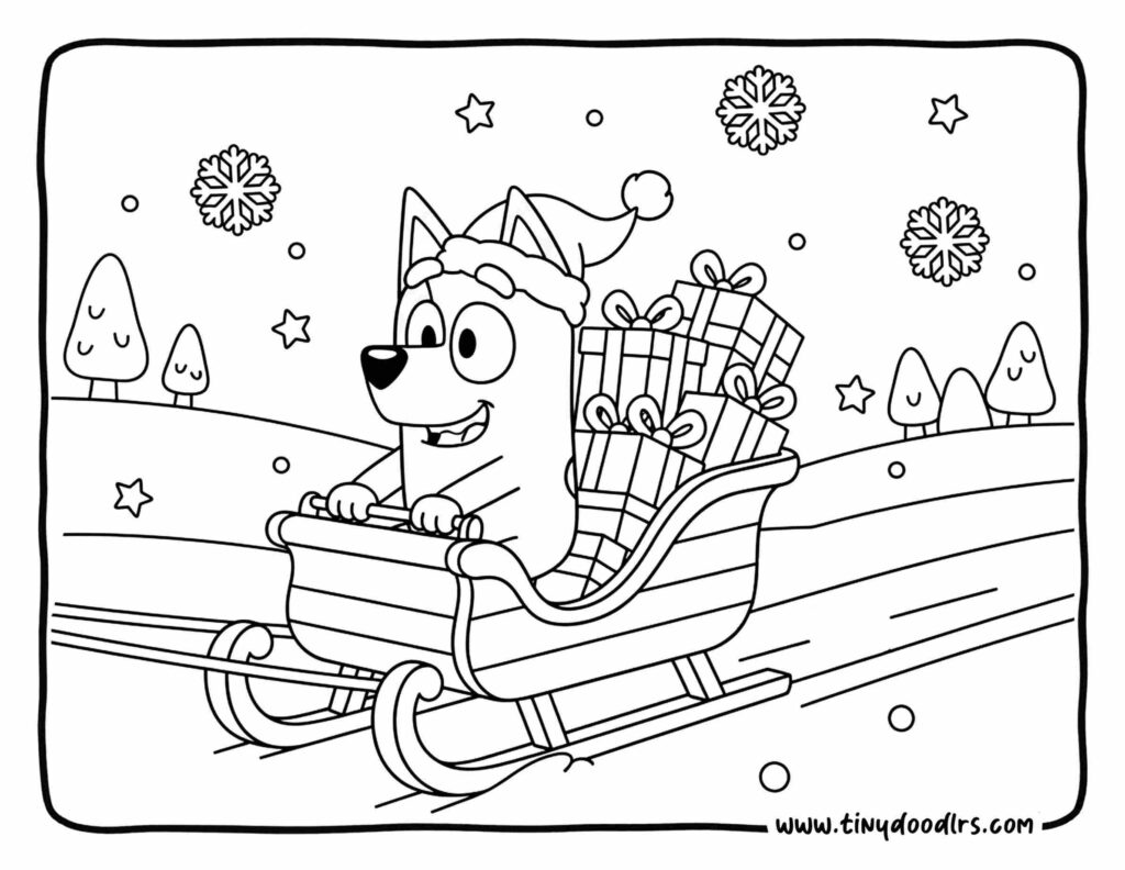 - Works as a cute alternative to bluey christmas coloring for kids .