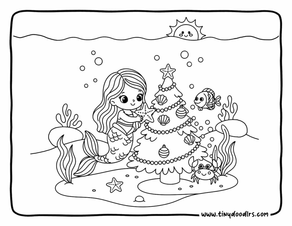 A magical underwater holiday scene inspired by kid-favorite mermaid cartoons.