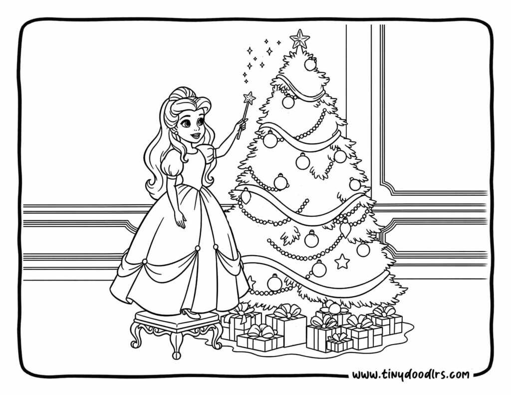 1. Sweet Princess Decorating a Sparkling Christmas Tree